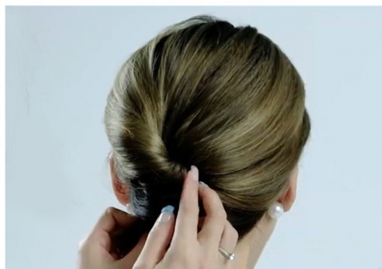 扭转发束紧贴下层头发,再用黑色小发夹固定好。