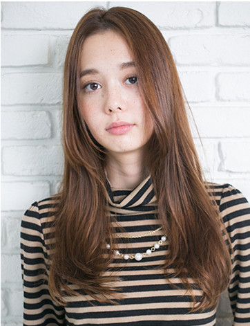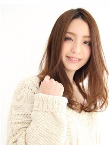 时尚看点:非常具有女人味的一款中长发中分发型,既能展露出光洁的额头又凸显出立体的五官来,搭配上浅棕红色的染发可以衬得mm肤色越发白皙光泽。