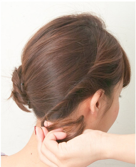 取出右侧的发束扭转成发辫。