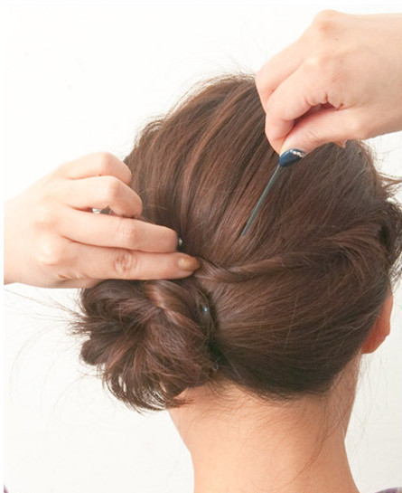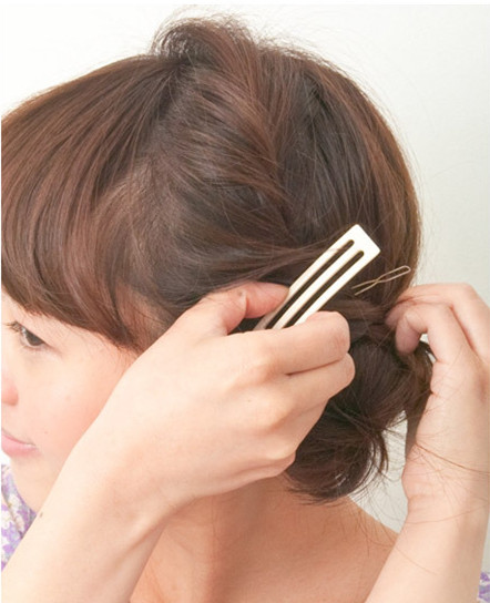 也用发夹固定再脑后。