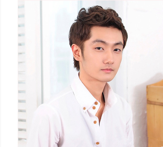 发型点评:这款男生方脸发型采用迷人的栗棕色搭配纹理烫的设计,轻松为短发勾勒出时尚潮流的气息,弯弯的斜分刘海的弧度掩盖过硬的线条感,是修饰方脸的好发型哦。
