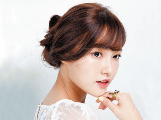 时尚看点:将中长卷发打理成发髻的造型还是非常显清新与优雅气质的,搭配稀薄的空气刘海既你带出迷人的双眸又显露的出一张精美的脸蛋,而脑后那蓬松的发髻盘发设计感在凸显颈部线条之余更是倍添时尚优雅魅力。