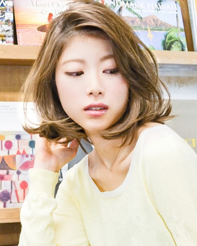 一九侧分刘海这款短发发型给人们显露出十足的时候气质,及下巴的微微内扣发尾与侧分刘海的完美结合,轻松助mm起到了修脸的效果,让脸型在视觉上看起来十分显小显瘦,最后染上亚麻色染发就更是清新吸睛了。