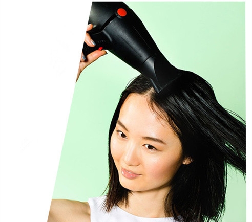 把头发划分为中分,然后用吹风筒将头发吹干。