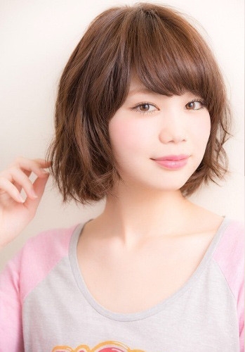 时尚看点:板栗色染发的这一款2016波波头发型尽衬托出白嫩肌肤与清新感,加上微烫刘海与蓬松蛋卷烫效果的短发搭配,轻松就带出了一张可爱的小脸来,再配上清新的妆容就更是清甜迷人了。