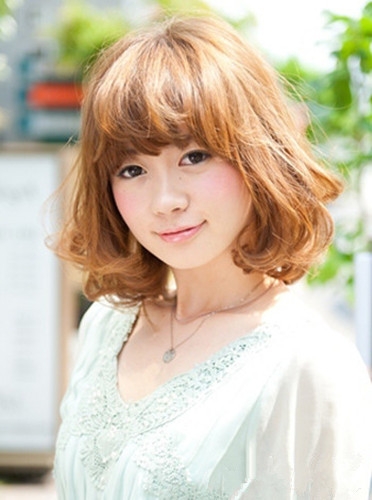 时尚看点:蓬松烫卷的这一款短发给人的感觉既时尚个性又有几分成熟的味道,那厚重的刘海与两家两边的烫卷头发结合,可以让圆脸mm看起来更加的甜美可爱一些,最后配上亮色的染发就轻松UP吸睛指数。