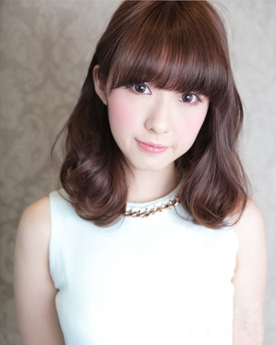 梳得整整齐齐的刘海齐肩瘦脸发型使得女生的眼睛特别大雨明亮,同时还衬托出一张甜美的鹅蛋脸来,而巧克力色的染发效果更是让发型提升了一个档次,加上发尾处的外翻卷设计,轻松助mm减龄显甜美可爱。