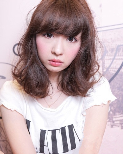 蓬松感打造的这款齐肩卷发可是能起到很好的瘦脸效果哦,紧贴在两颊出的烫卷头发与微斜刘海的搭配,能够很好的柔化脸部线条,让脸型在视觉上看起来更显显一些,加上亚麻色的烫就更是能衬托出白嫩皮肤。