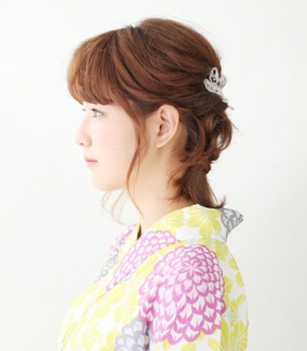 时尚看点:清新甜美范儿的这款一分钟扎发发型十分的惹人爱哦,搭配微卷的齐刘海与两鬓卷曲的发丝,轻轻松松就能为mm倍添一抹清甜女人味,而后脑那内扣马尾扎发更是别致吸睛了,最后再配上水晶发夹点缀就更显淑女范儿。
