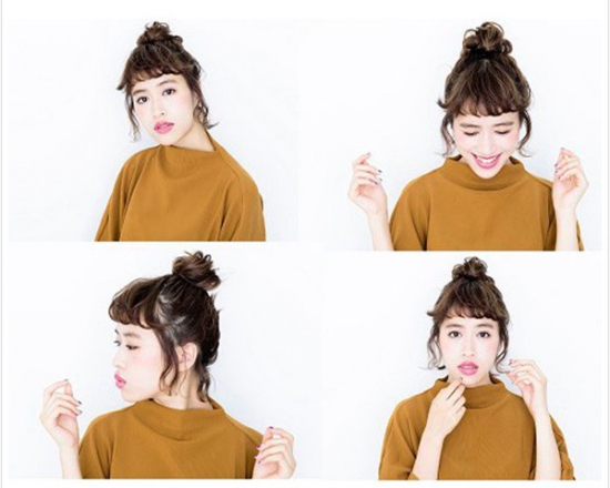 时尚看点:给人俏皮十分的这款diy丸子头扎发发型让十分喜欢不已,搭配露额的简短烫卷刘海与两边的发丝搭配,轻轻松松彰显甜美与可爱气质,同时倍显嫩白的瓜子脸蛋呐,而那高耸的丸子头设计更是清爽显可爱气质。