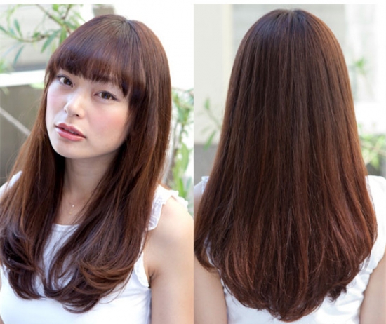 发型点评:这款中长发会比较适合脸宽的mm们,可以利用两边款款而落的头发来修饰脸型,然后把发尾的进行微微的内扣烫卷+染发效果,轻松就能点亮发型看点与潮感。