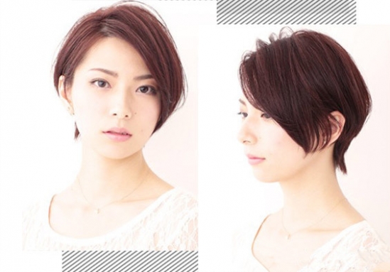 这款女生个性短发采用三七分的刘海一边别在耳后一年划过眼尾,将mm的立体五官全部呈现出来,暗红色染发让mm显得更加时尚帅气。