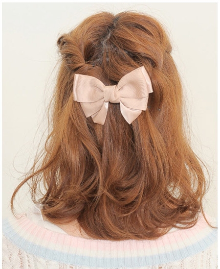 最后带上准备好的蝴蝶结发饰就哭晕完成这款你半公主头扎发了。