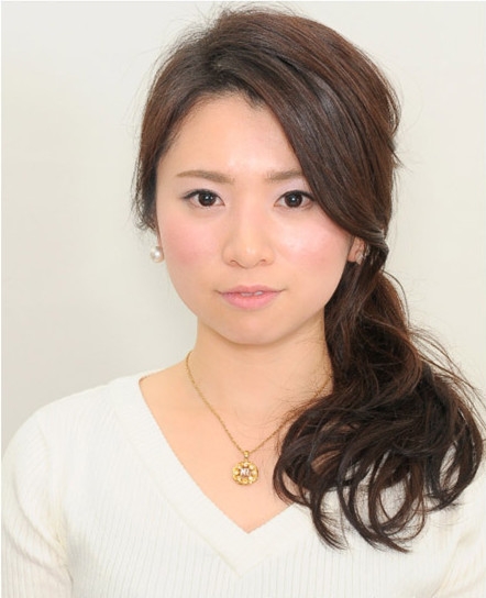 时尚看点:将卷发扭转制成的这款侧边马尾扎发造型,让女生展现了出精致的脸部线条与脸部轮廓,搭配一款侧分长刘海,既能修颜又倍添十足优雅气质,加上侧分马尾扎发搭配就更是好看了。