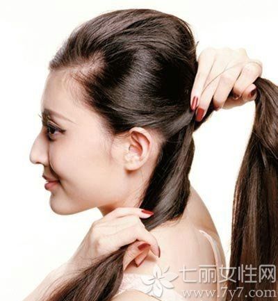 长直发怎么扎马尾好看图解 打结法塑造时尚马尾