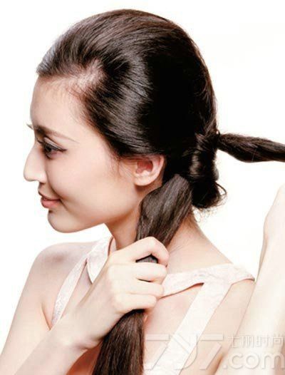 长直发怎么扎马尾好看图解 打结法塑造时尚马尾