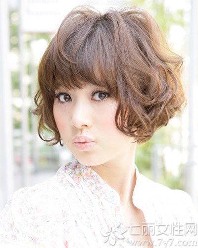丰盈烫卷设计的这款短发不仅设计个性更是能打造出一张可爱小脸来,配上经典的棕色染发后更容易吸眼众人的眼球,而那齐眉的空气刘海带出了一双明亮的大眼,尽显逼人气质。