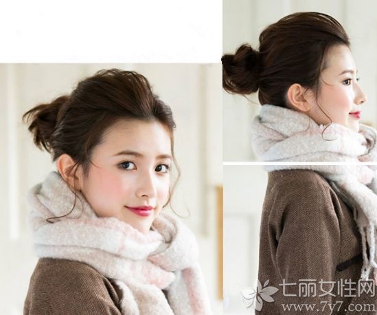 时尚看点:将头发扎成高耸的丸子头再戴上围巾或是微博,这样能够轻松的为女生带出冬日里的清爽感与气质感,也不不容让头发变得凌乱。而那无刘海的搭配更是能清爽露额显完美瓜子脸蛋,再配上两小烫卷发丝的点缀就更清新唯美了。