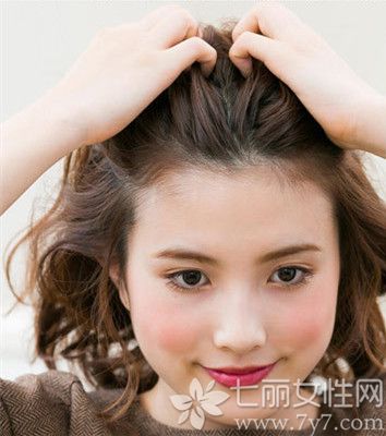 先用加热的卷发棒将头发弄卷,再在手上涂少量定型产品抹匀于头发上之后,再用手将头发往后抓。