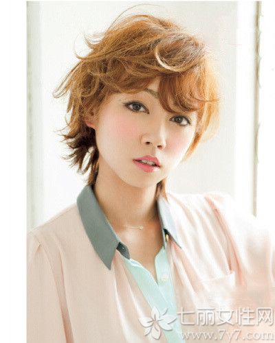 发型点评:稍显凌乱感的这款烫发短发造型尽显个性风味,再搭配外翘设计的头发就更显潮流范儿,而那金棕色的染发效果瞬间提升了短发的吸睛指数与时髦感。