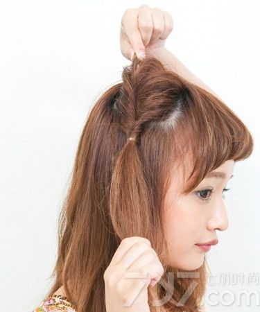 然后用手在发束拉出蓬松感。
