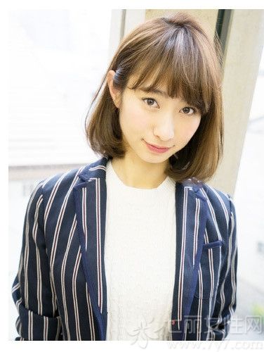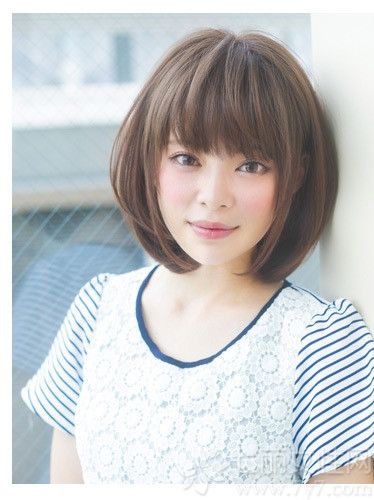 发型点评:款短发是用齐刘海搭配两边的鬓角的头发修饰脸型,让mm的小脸变得更加可爱动人,而且齐刘海还能突出妹纸大大的眼睛,让妹纸变得更清新灵动。