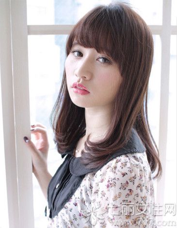 有些mm会觉得方脸搭配中长直发看起来太过服帖,在修饰脸型上会变弱一些,其实巧用的用刘海搭配两边中长直发也可以让脸型变小,再搭配内扣发尾就更显漂亮了。