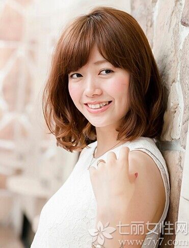 时尚看点:发量饱满的这款齐肩圆脸发型给人几分熟女的气息,采用斜刘海与两边微烫卷的头发结合,可以轻松修饰圆脸带出一张好看的小脸来。