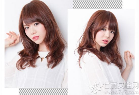 像这款红棕色的中长卷发也是很受鹅蛋脸女生的喜爱,亮丽的发色可以显得皮肤很白皙哦,长卷发的自然披散也很性感迷人。
