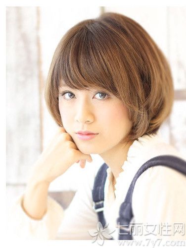 爱十分的这款齐肩短发也是心形脸妹子的最佳选择哦,空气感的齐刘海与外翘烫卷的短发搭配,不仅带出明亮大眼更是蓬松惹人爱。
