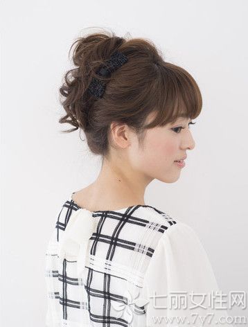 时尚看点:将齐肩卷发高高盘起来的这款盘发发型,向人洋溢出十足的淑女与优雅的气质,搭配齐眉的厚重刘海,既可以让长脸脸型看起显短一些又带出女生灵动的双眸,而脑后那稍显蓬松的盘发与精美发饰的搭配,更是展现出满满的优雅气质。