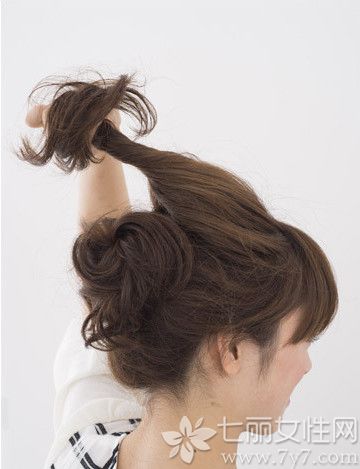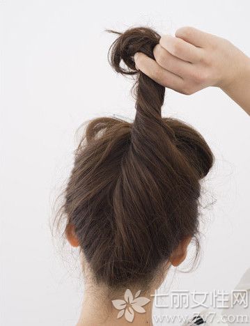 取出脑后的头发缠绕扭转成发辫并用发夹固定好。