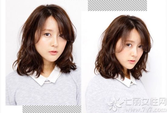 时尚看点:稍显成熟味道的这款中短发利用侧分稍长刘海来修饰脸颊的肉肉,再将头发进行微微的烫卷设计,使得头型更加饱满之外还可以提升妹子的时尚感。