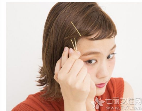 分别在两边刘海上别上准备好的金色小发夹,就可以完成这款短发打理了。