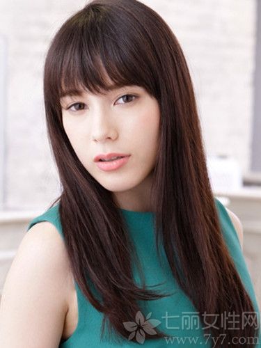 发型点评:黑色的头发搭配齐刘海的造型也是额头窄妹子们的不错选择,两边那款款而落的头发更是助mm起到十足的修颜效果,完美带出精美的好脸型。