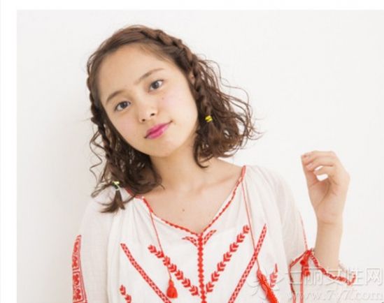 时尚看点:将短发左右两边的头发分别扎成鱼骨辫的样子,不仅可以显露光洁的额头更是倍添可爱气质,加上那烫卷的发丝搭配就更是别致显甜美感了。