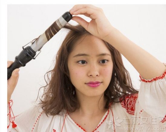 先用加热的卷发棒将发丝烫卷。