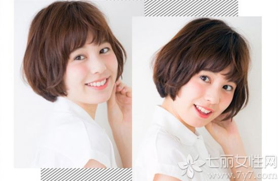 刘海别致的设计让短发更有造型感而且让短发看起来更可爱,棕色头发让皮肤更白皙之余倍显清纯美,总体上来说还是十分的美丽与俏皮可爱,是一款非常适合20岁妹子的发型。