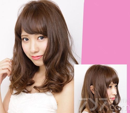 圆脸美眉适合的这款中长卷发向人们彰显出一股唯美迷人的气质,采用一九分刘海与紧贴脸颊的烫卷头发的搭配,来修饰圆脸的肉肉与过硬的脸部轮廓,从而带出一张好看的小脸型。