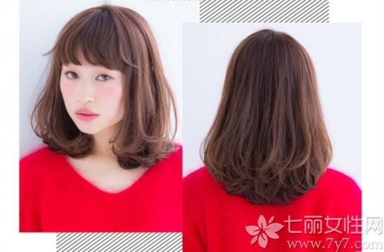发型点评:适合巴掌脸的这款中短发采用蓬松感的烫卷来起到修颜效果,将头发染上深棕色的头发让肤色看起来超白嫩之外,还让妹子看起来更加的甜美迷人。