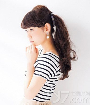 时尚看点:简单打理而成的这款高马尾不仅清爽气质十足更是倍添女生俏丽,搭配蓬松的刘海修颜倍添甜美气息,而那精美的发夹更是让马尾更时尚吸眼。