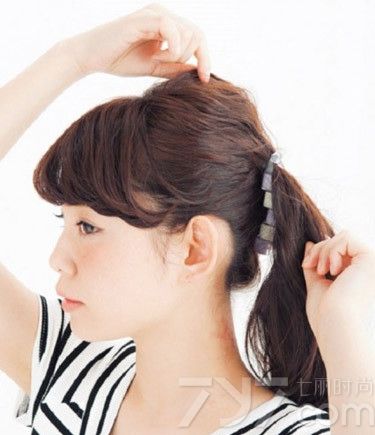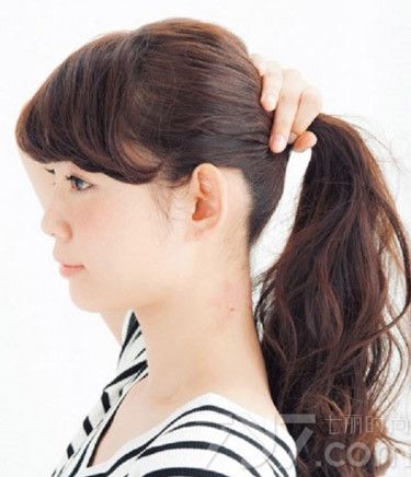 再将头发用橡皮筋绑成马尾,就可以完成了。