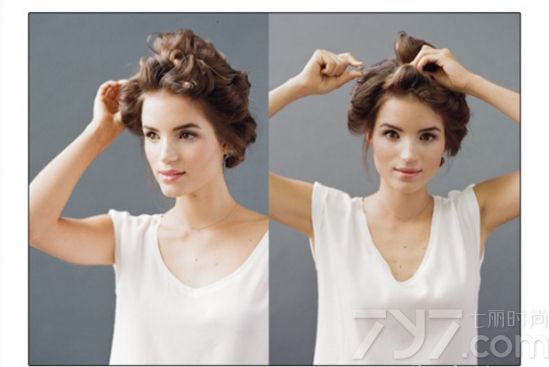 然后把全部头发绑到头上,并用手抓出整体蓬松的效果。