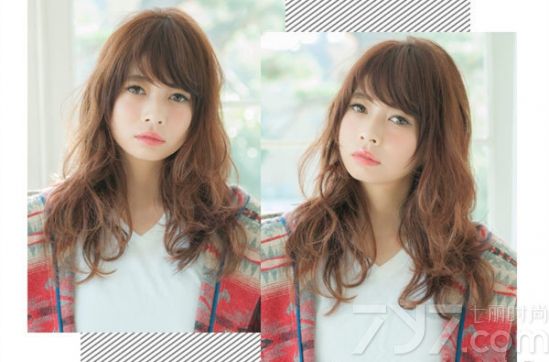 发型点评:斜刘海搭配凌乱中长卷发可以修饰出好看的脸型,同时能展现出mm的时尚个性感,而那刘海长度差不多到眼部,更是轻松突出灵动的双眼,加上棕色的染发就更是吸眼了。