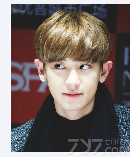 灿烈这款浅亚麻色染发发型既低调又时尚好看,搭配整齐的齐眉刘海让灿烈男神显尽潮男帅气的一面,同时还多了一份呆萌可爱范儿。