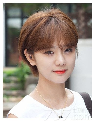 简单裁剪的短发容易给人精神焕发的感觉,让人感觉到妹子的正能量与洒脱。配上棕色系的染发就更是显嫩白肌肤与好气色。