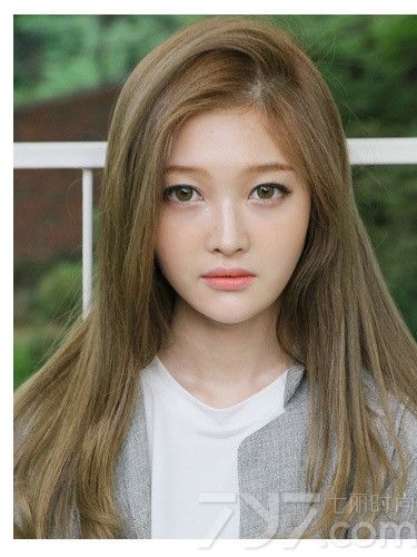 这款中长发的正确分法能够弥补包子脸的先天缺陷,搭配一款三七侧分长刘海,既助mm修脸十足更是显与御姐气质,加上浅亚麻的发色搭配就更清新淡雅了。