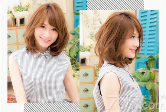 发型点评:自然内扣的齐肩发型也是不少妹子喜爱的发型之一,棕色的发色搭配斜分刘海设计,让妹子尽情突显甜美可人的气息,再配上微微斜分的齐眉刘海就更动人了。