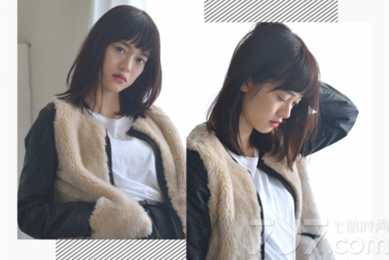 发型点评:齐肩发型搭配齐刘海不仅不仅很显气质,而且可以很好地修出迷人的巴掌脸,瞬间就帮助妹子打造出纯美迷人的阳光形象。