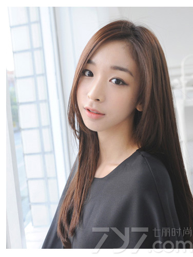 发型点评:披着一袭垂坠的中长直发让使锥子脸更加复古硬朗,整个发型虽清汤挂面但往往能给人惊艳的气质,使得妹子犹如袅娜娉婷般动人。